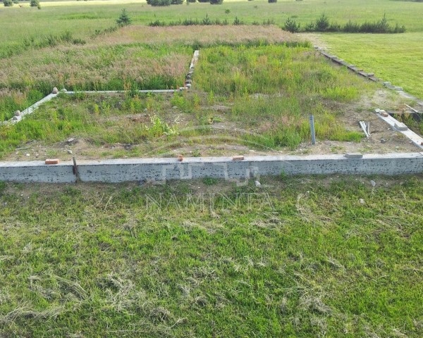 Klaipėdos r.,Pjaulių k. parduodama sodyba.Nebaigta statyti sodyba prie Vilhelmo kanalo,geodeziniai matavimai,projektas 1a, 130kv namui, supylti pamatai,įvesta elektra,vanduo,prūdas,yra medinis vasarnamis,lauko wc,sandėliukas.