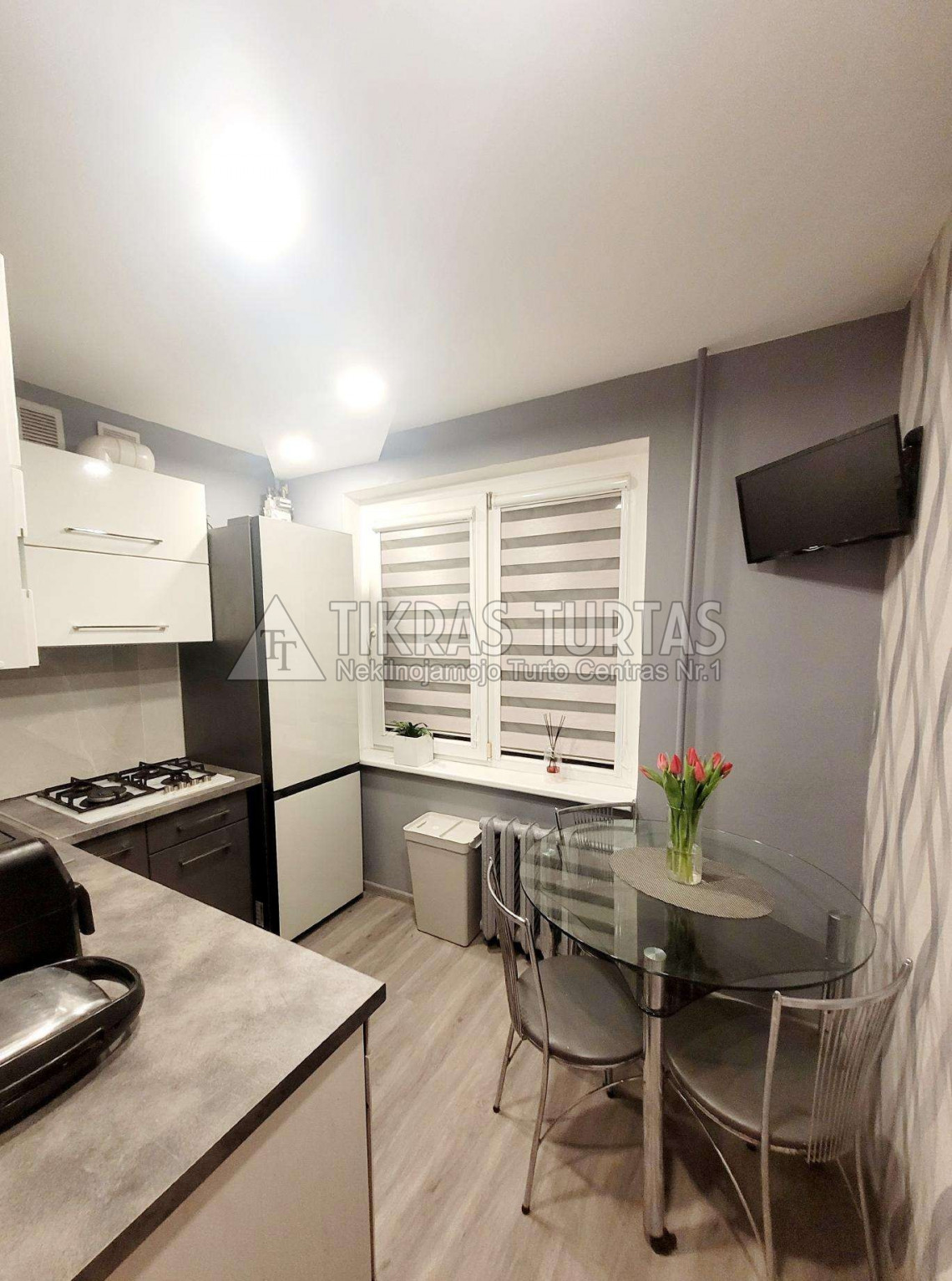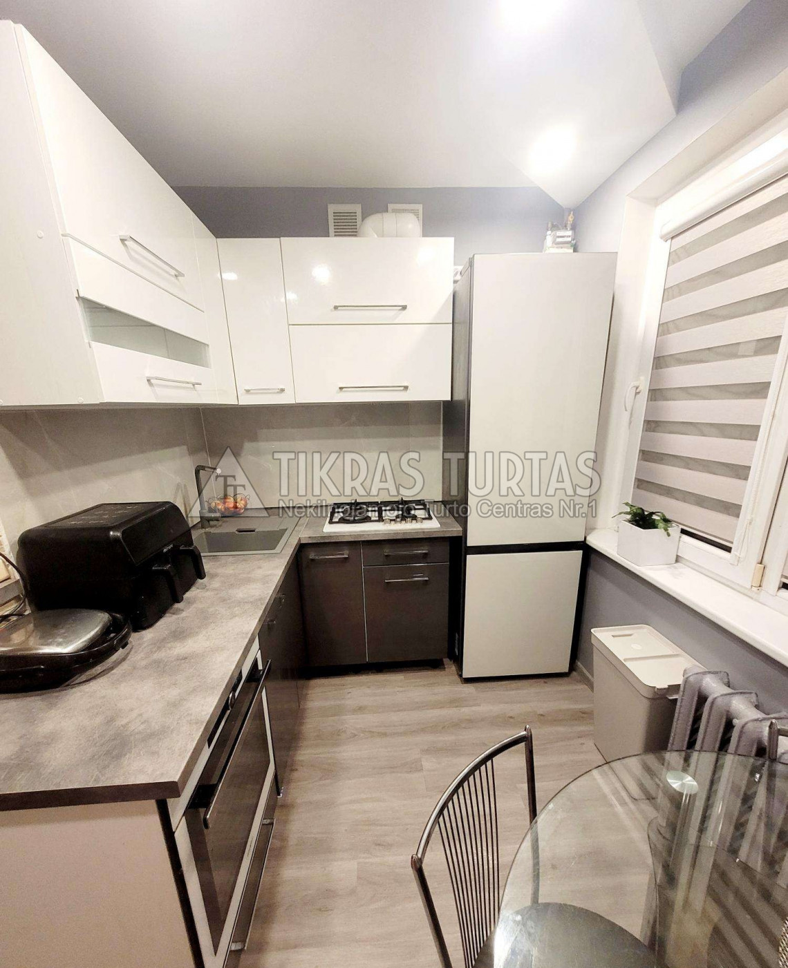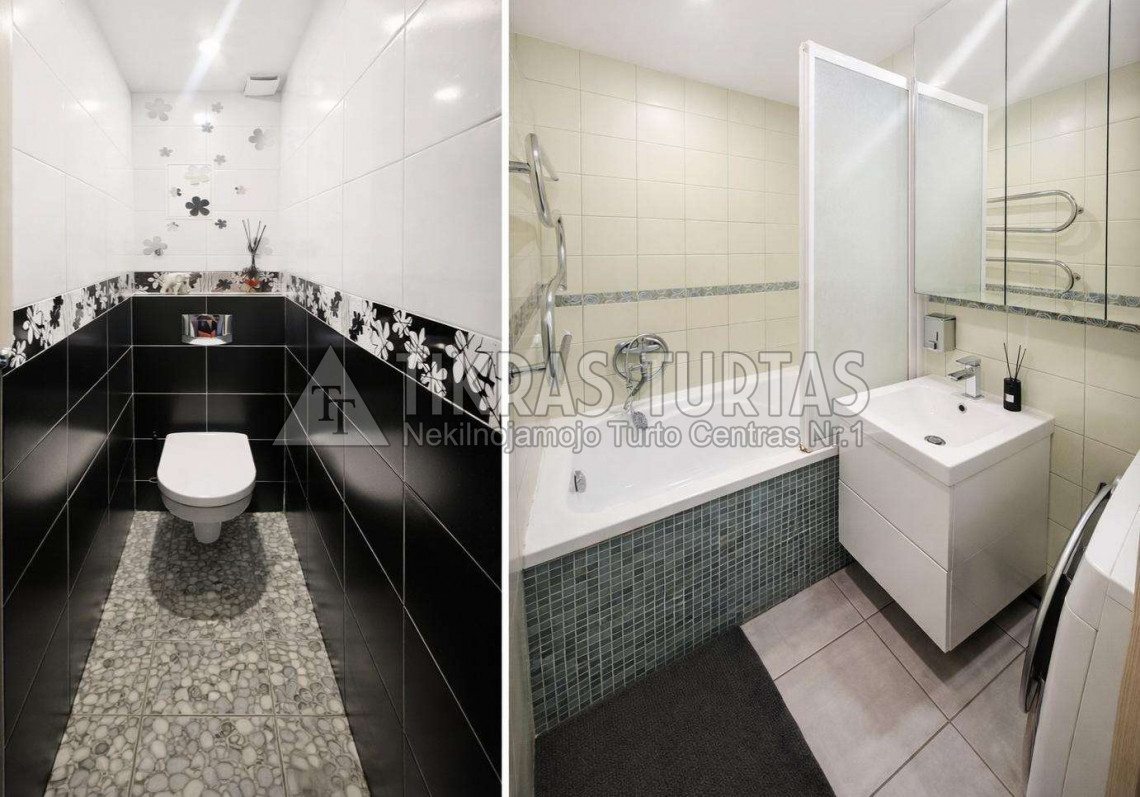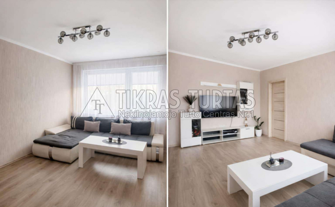 Tvarkingas butas; Du balkonai, vienas iš jų įstiklintas; Yra rūsys;