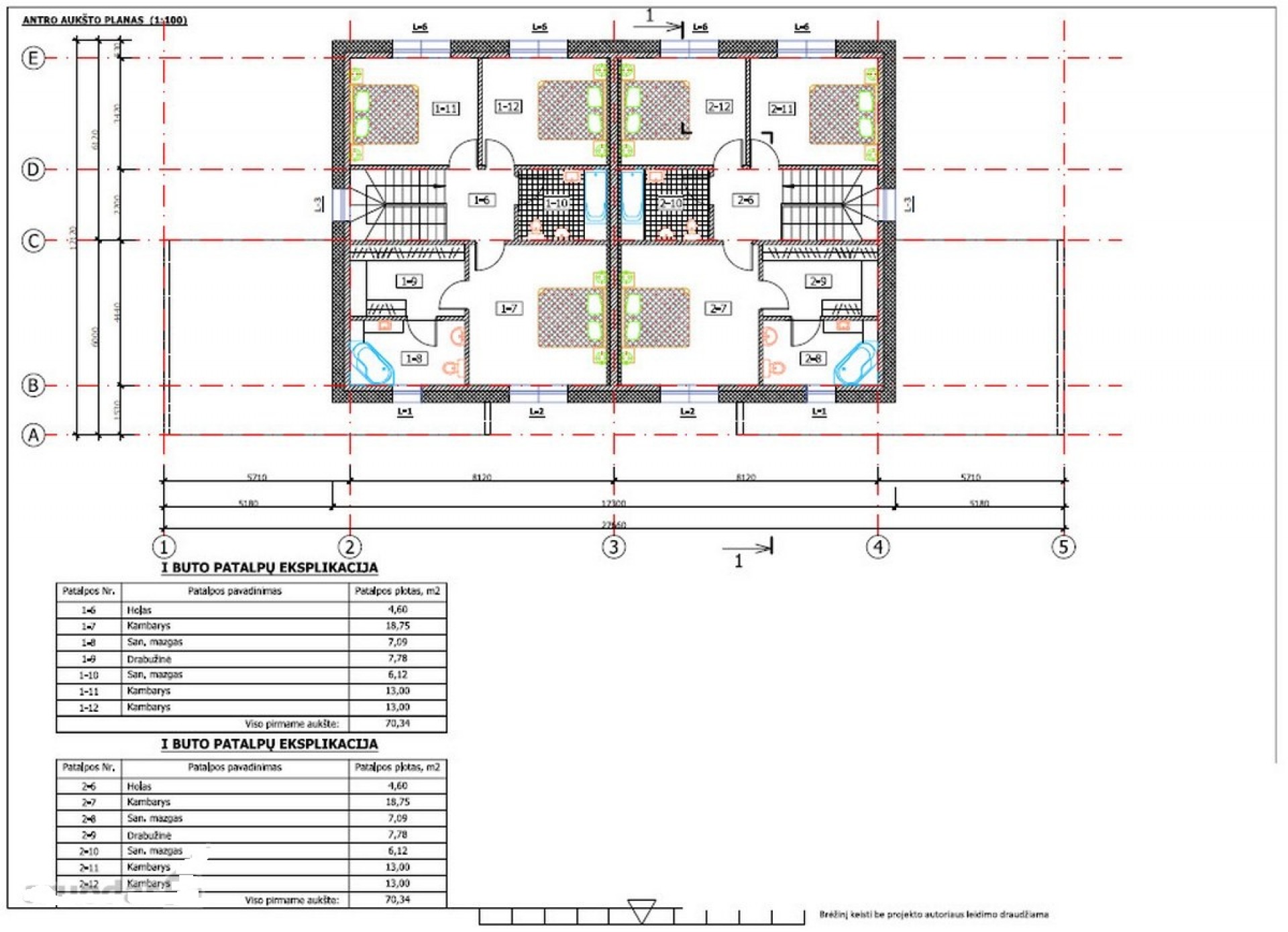 - Kambarys 18.75m2 su atskira drabužine (7.78m2) bei atskiru san. mazgu (7.09m2)
