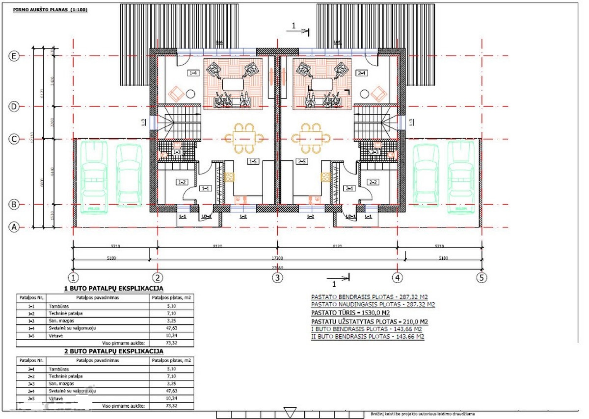 - Vieno namo plotas – 143m2+31m2 stoginė;