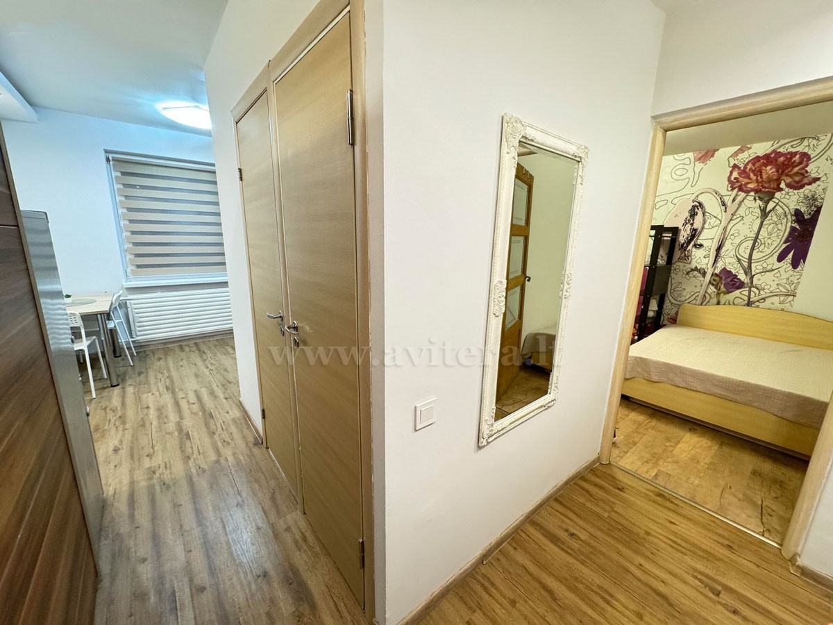 Parduodamas jaukus 1 kambario butas Laukininku g., Klaipėdoje (33 m2). Butas tvarkingas, svetainė sujungta su miegamąja zona, atskira virtuvė, vonios kambarys ir tualetas. Butas parduodamas su visais baldais, bei reikalinga buitine technika: šaldytuvu, dujine kaitlente ir skalbimo mašina. Nedideli komunaliniai mokesčiai. Šarvo durys, rakinama laiptinė, įrengta telefonspynė. Ramus rajonas, strategiškai patogi vieta - šalia parkas, dviračių takai, prekybos centras „IKI Vyturys', viešojo transporto stotelė . Šiuo metu plečiama automobilių stovėjimo aikštelė.