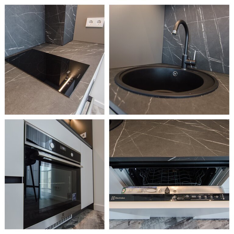 -- Visa reikalinga buitinė technika (indaplovė, indukcinė kaitlentė, orkaitė, šaldytuvas, skalbimo mašina);