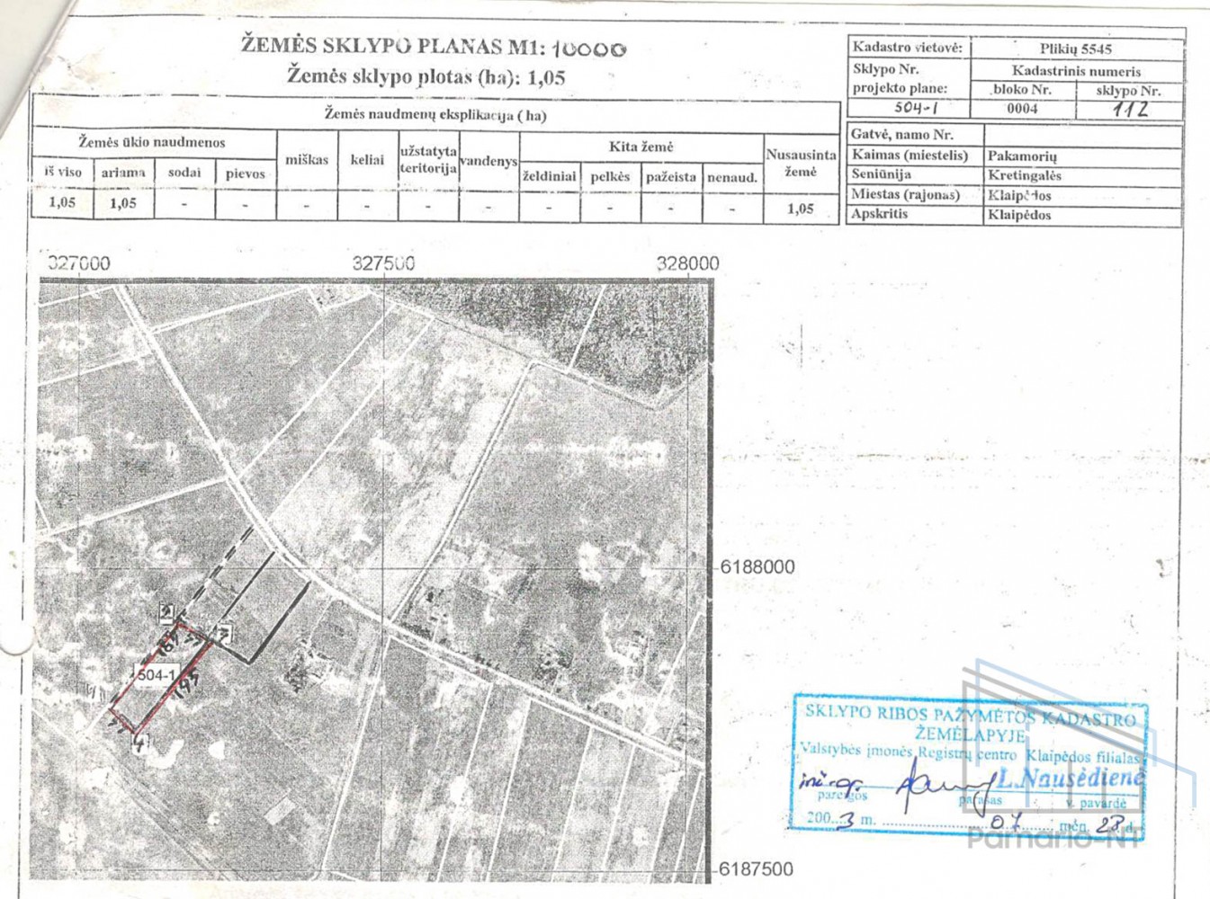 Parduodamas 1,05 ha žemės ūkio paskirties sklypas Klaipėdos r. sav., Kretingalės sen., Pakamorių k. Pakamoriai – kaimas Klaipėdos rajono savivaldybėje, 6 km nuo Kretingalės, 1 km į vakarus nuo Plikių. Nuo asfaltuoto rajoninio kelio Kretingalė – Plikiai – Smilgynai (2219) iki sklypo - 240 m. - sklypo plotas: 1.05 ha; - paskirtis: žemės ūkio; - našumo balas: 49,0; - be pastatų; - sklypas taisyklingos formos; - orientuotas šiaurės rytų kryptimi; - sklypo reljefas lygus; Žemė dirbama, neapleista. Šalia sklypo, netoliese, yra gyvenamieji namai. ________________________________________________________ UAB Pamario NT brokeris Kęstutis Objekto apžiūra ir konsultacija yra nemokama. Pirkimo atveju mokamas sutartas mokestis už suteiktas paslaugas. Skambinkite ir suteiksiu daugiau informacijos, susitarsime dėl apžiūros. Bendradarbiaujame su visais bankais ir kredito unijomis, turto vertintojais. Palankios paskolų sąlygos uždirbantiems ne Eurais. Juridiškai teisingai paruošiame nekilnojamojo turto pirkimo - pardavimo dokumentus. Nuotraukos yra UAB Pamario-NT nuosavybė, kopijuoti draudžiama. Daugiau pasiūlymų rasite: