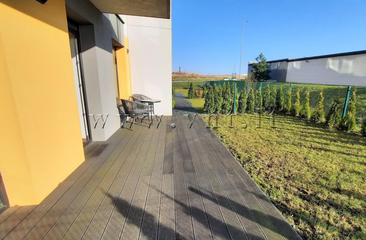 Butui priklausanti terasa, aptverta tvora, apsodinta tujomis. Yra išpirkta vieta automobiliui. Sandėliukas parduodamas už papildomą kainą.