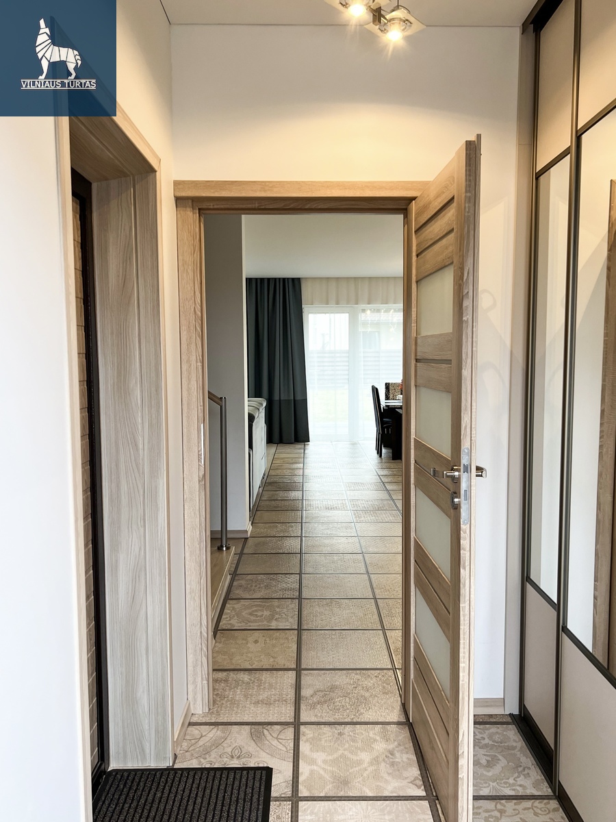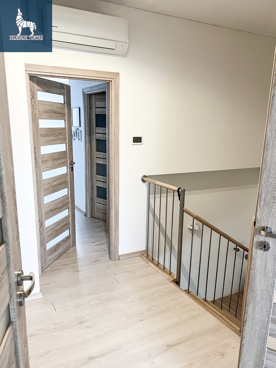 Poilsiui ir darbui skirti 3 kambariai antrame aukšte: pagrindinis miegamasis su atskira erdvia drabužine ir privačiu san. mazgu su dušu, 2 vaikų kambariai ir san. mazgas su dušu.