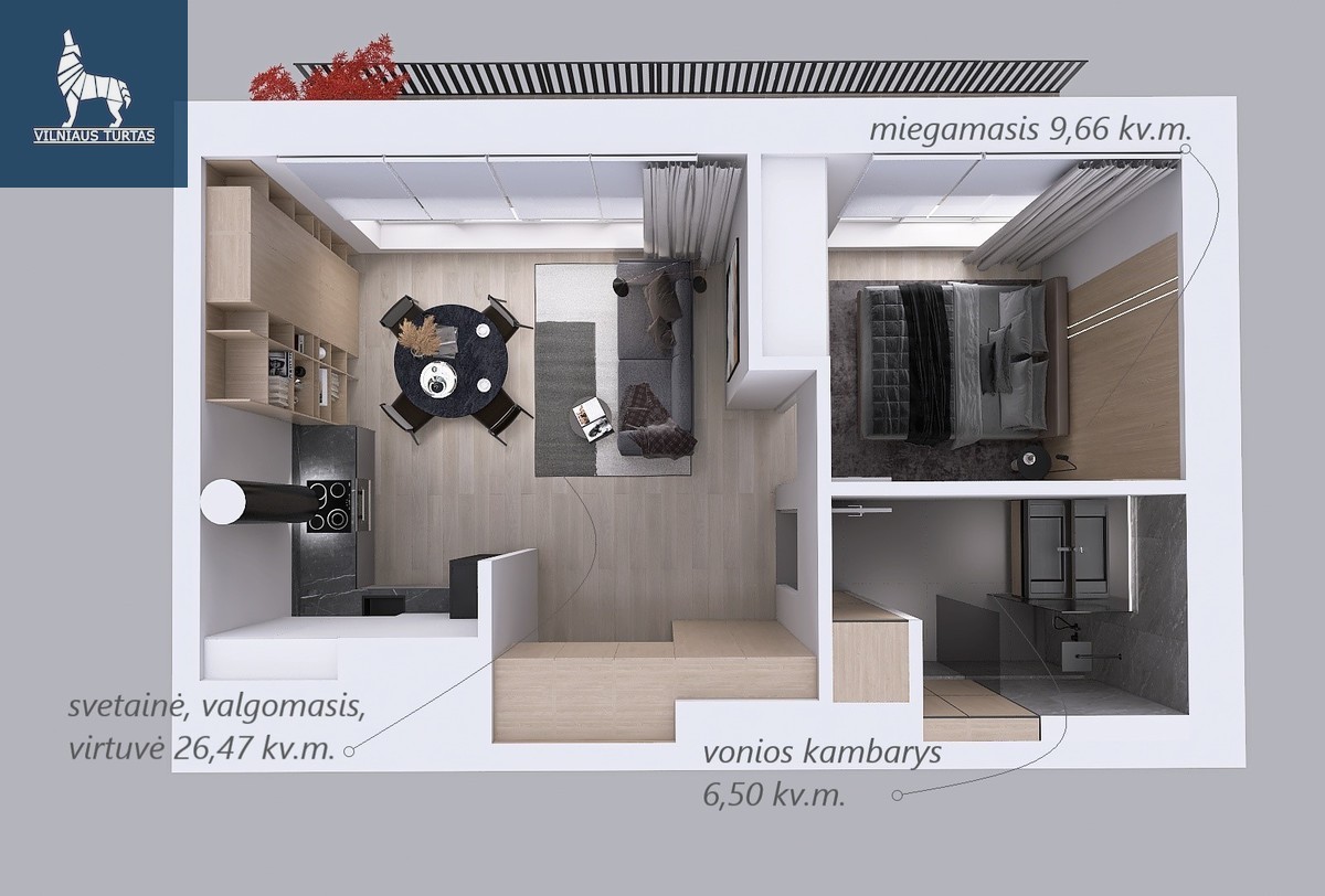 • Kambarių skaičius – 2