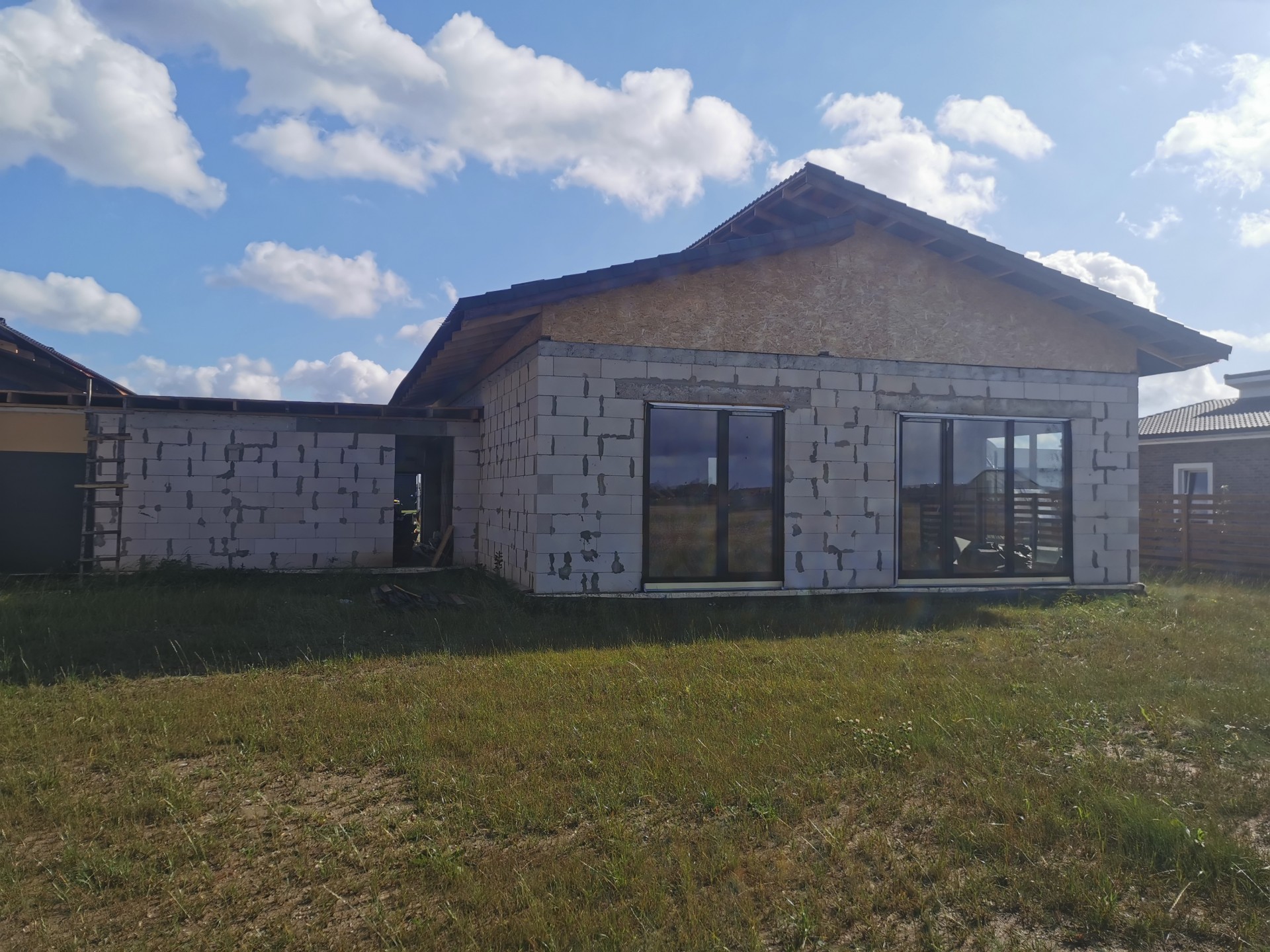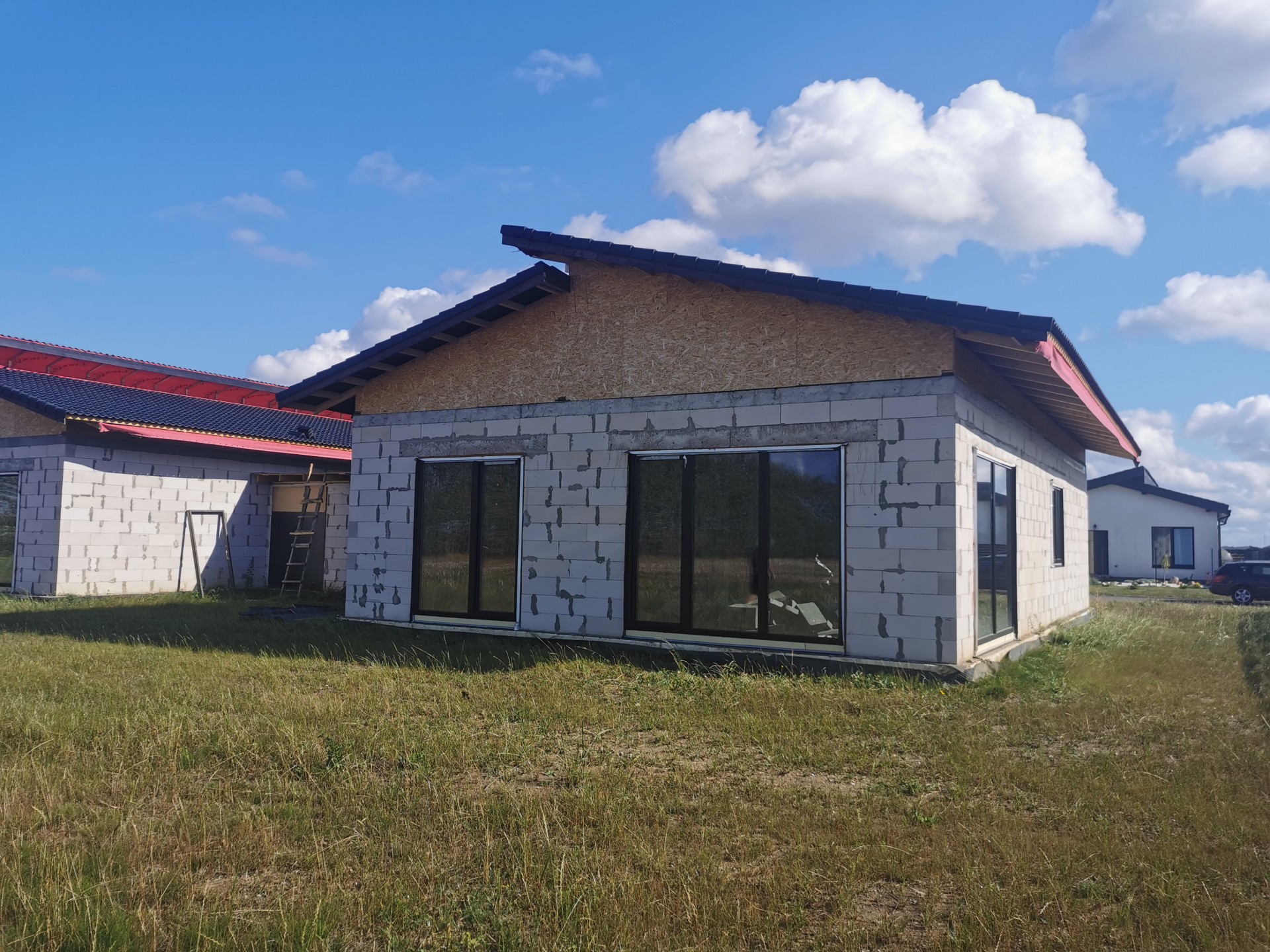 Parduodamas blokuotas A+klasės namas šalia Klaipėdos Namo plotas: 145kv .m. tame tarpe garažas 22 kv.m. , 6 arų žemės. Asfaltuotas privažiavimas, sutvarkytas kvartalas, šalia autobusų stotelė. Kaina skelbime tokio baigtumo kaip yra dabar Su daline apdaila, 80-85% baigtumu kaina butu 150000 Lauke: pilna fasado apdaila, išlygintas sklypas. Viduje: sumontuotos kambariu pertvaros, išvedžiotas grindinis šildymas, išvedžiota elektra, nuotekos ir vanduo. Namai statomi tik kokybiškomis medžiagomis. Kviečiu apžiūrėti gyvai.