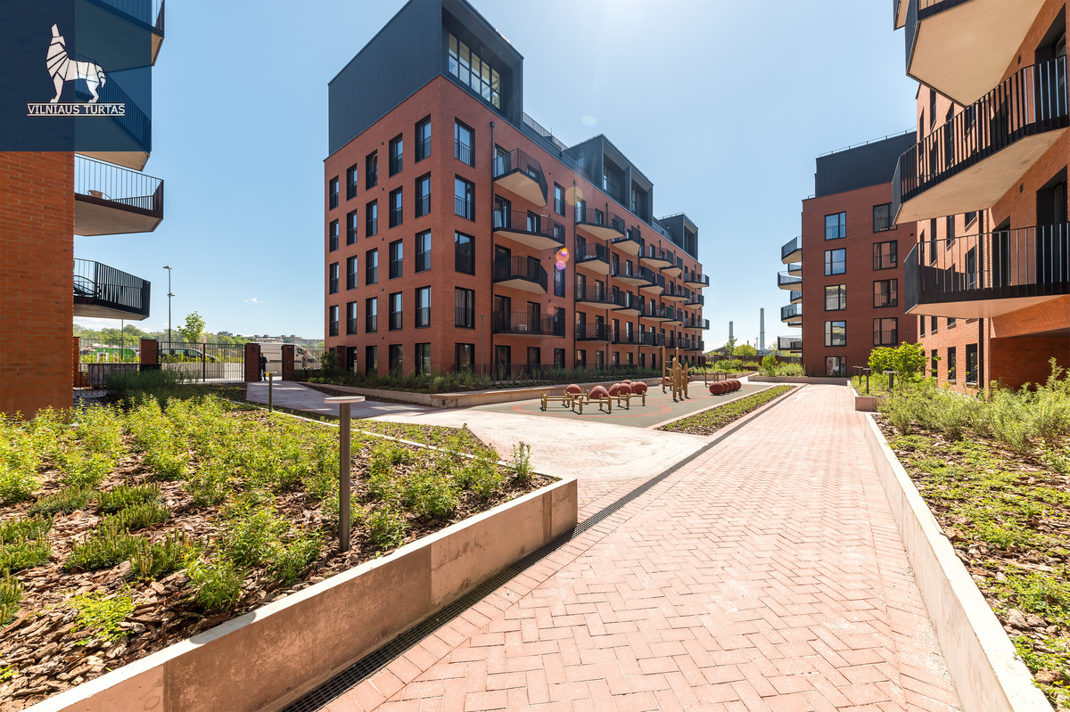 ⭐ Premium kokybės projektas, kuriame didelis dėmesys skiriamas kokybei, fasadas iš klinkerio, moderniai įrengtas vidinis kiemas, įrengtos poilsio ir laisvalaikio erdvės, apželdinta teritorija įrengti suoliukai, projekto vystytojas įrengė naują taką iki Neris