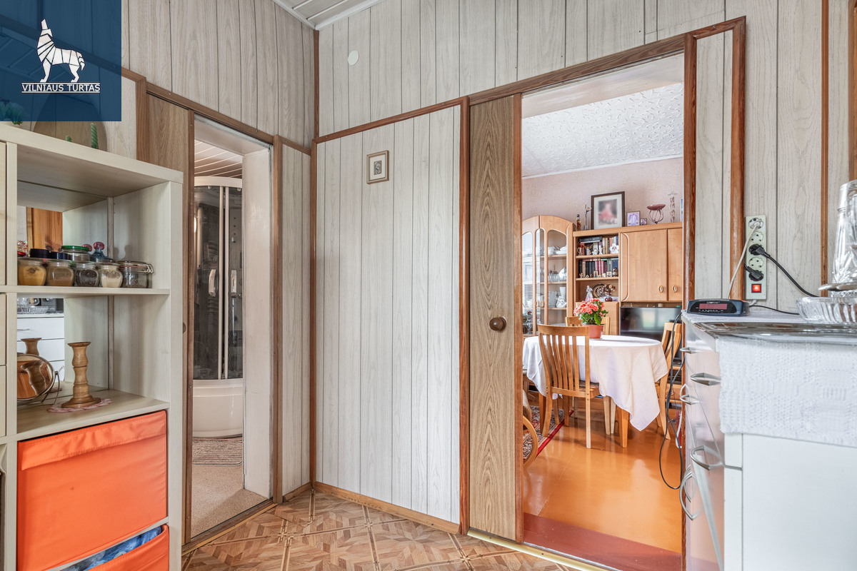 Parduodama yra namo dalis su sklypu bei jam priklausančiais ūkiniais pastatais.