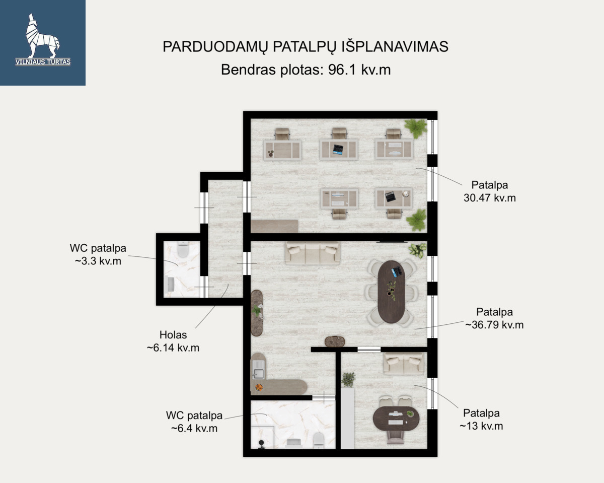 - Bendras plotas: 96,1 kv. m