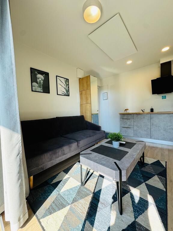 Parduodamas su baldais ir buitine technika (virtuvės baldai, sofa-lova, dvigulė lova; viryklė, šaldytuvas, gartraukis, mikro bangų krosnelė, du televizoriai, kondicionierius);