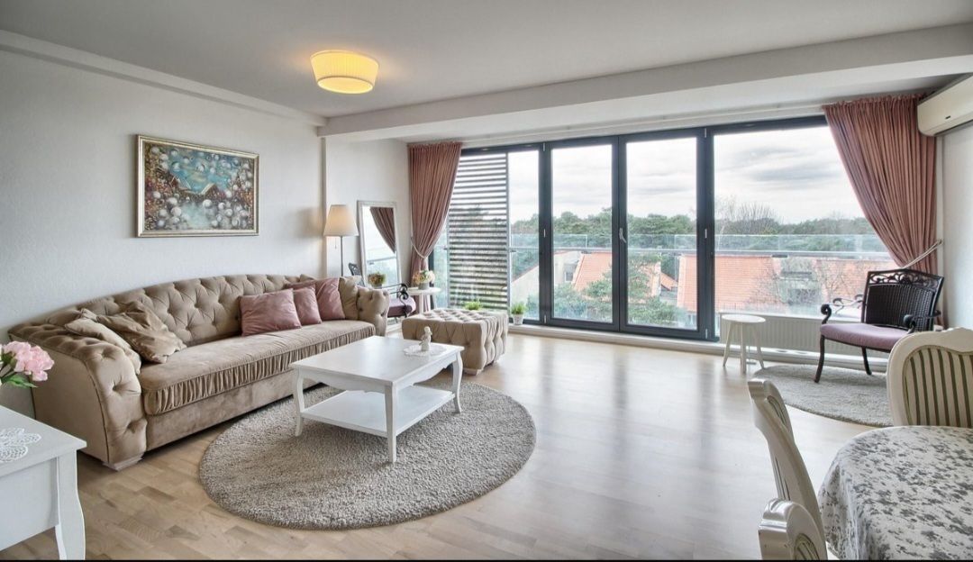 Erdvus 3 kambarių butas pačioje Palangos širdyje, Daukanto gatvėje komplekse "Palangos panorama". Pro buto langus atsiveria nuostabus vaizdas į jūrą. 41 kv.m. svetainė su virtuve, 17 kv.m. ir 12 kv.m, kambariai, 6 kv.m. wc su vonia. 12 kv.m. balkonas, išėjimą į balkoną turi visi trys kambariai