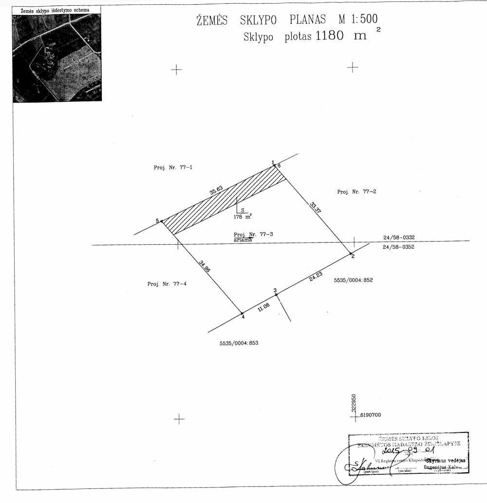 Klaipėdos r. Stančiai, Taurioji g. Parduodamas 11.80 aro sklypas mažaaukščių gyvenamųjų namų statybos. Šalia sklypo ribų yra dujotiekis. Į sklypą atvesti elektros tinklai, padarytas statybinis kelias. Geras susisiekimas, šalia autobusų stotelė, kursuoja maršrutinis autobusas. Asfaltuoti kelias Klaipėda-Kretinga (N168 ). Vaizdinga vietovė, netoliese teka upė Danė, golfo laukai, Kretingalės piliakalnio parkas, kuriasi naujos gyvenvietės. Iki Klaipėdos miesto centro ~ 13 km. Kaina – 35.000 € Skelbimo ID 414121 NT REGISTRO CENTRO IŠRAŠO DUOMENYS: Sklypo adresas: Klaipėdos r. sav. Stančių k. Taurioji g. Pagrindinė naudojimo paskirtis: Kita; Naudojimo būdas: Gyvenamosios teritorijos; Naudojimo būdas: Vienbučių ir dvibučių gyvenamųjų pastatų teritorijos; Kadasrtinė vietovė: Kretingalės k.v. Bendras plotas: 0.1180 ha; Leistinas teritorijos užstatytmaas: ~ 0.30; Leistinas intensivumas: ~ 0.60; Leistinas pastato aukštis: ~10.5 m Žemės ūkio naudmenų našumo balas: 41 Sklype įrengtos valstybei prikausančios melioracijos sistemos bei įrenginiai 0.118 ha; Matavimų tipas: Žemės sklypas suformuotas atliekant kadastrinius matavimus; KOMUNIKACIJOS: Elektra – YRA (vienas apskaitos skydas ant dviejų sklypų); Dujos – YRA(papoldoma sutartis su duju tiekėju); Vandentiekis – Vietinis ( Šachtinis šulinys, grežinys); Nuotekos - Vietinės (traidenio tipo valymo įrenginiai su įšgriebiama duobe); Kelias – YRA (statybinis grunto kelias) PREKYBOS IR PRAMOGU CENTRAI; PASLAUGOS IR POILSIS: ~ 0.5 km - Kaimo turizmo sodyba 'Stančių Klėtis' ~ 2.0 km.- Golfo klubas'National Golf Resort'(Tvenkinių g.30 Stančių k.); ~ 2.0 km.- Golfo klubo'National Golf Resort' restoranas (Tvenkinių g.30 Stančių k.); ~ 2.5 km.- Maisto prekių parduotuvė (Klaipėdos g.20 Kretingalė); ~ 2.5 km.- Kavinė-baras „KUKUDRA“ (Klaipėdos g. 16 Kretingalė) ~ 2.5 km – Kretingalės Slėnio parkas (Šaltinio g. Kretingalė) ~ 8 km - 'RIMI'P.C. (Liepojos g.27 Klaipėda); ~ 8 km - 'IKI' P.C. ( Liepojos g.238 Klaipėda); ~ 17 km.- P.C. 'ERMITAŽAS' (Palangos pl.16 Sudmantų k.); ~ 19 km - P.C. „AKROPOLIS“ (Taikos pr. 61. Klaipėda); ~ 18 km Iki P.C. „GRANDUS“ ( Taikos pr.66 A Klaipėda); ~ 19 km Iki Sporto Arena „ŠVYTURIO ARENA“ (Dubysos g.10 Klaipėda) PRIVALUMAI: Patogus susisiekimas individualiu ir visuomeniniu transportu. Netoli vaizdingos „National Golf Resort“ teritorijos ir Kretingalės piliakalnio ir Danės upės slėnio parko. P.S. Netinka šis pasiūlymas? Yra daugiau įvairių pasiūlymų: Klaipėdos mieste ir rajone; Jakų, Zeigių, Kunkių, Grabių, Dargužių, Gindulių, Mazūriškių, Klipščių, Tauralaukio, Kalotės, Svencelės, Drevernos, Priekulės, Palangos, Kretingos, Gargždų, Šilutės, Rusnės vietovėse. Namai; Sodai; Sodybos; Žemės ūkio, namų valdos, reakreacinės, komercinės ir sodybai skirti sklypai. Parašykite kas jus sudomino, o mes Jums atsiųsiu daugiau konkrečių pasiūlymų.