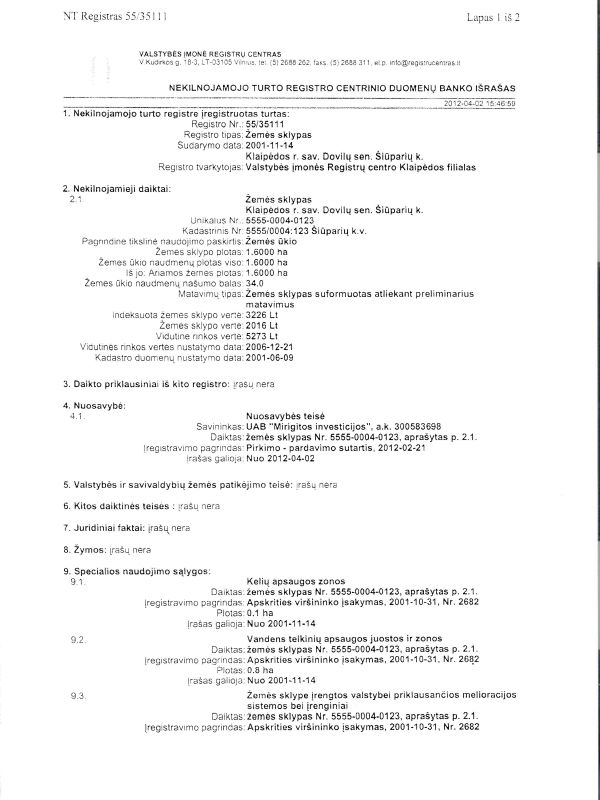 Parduodu 1.60 ha.žemes sklypa Šiūparių k.Sklypas ribojasi su asfaltuotu keliu kitas galas su upeliu Aisė.Sklypo riba puse upelio, matmenys: 100/142/118/116. Galime pakeisti i namu valda (gyvenamoji statyba). Sklype yra dideli telkinei žvyro,sklypo naudingumo balas 38.Kadastrinis adresas:5555/0004:123 Šiūparių k.v. Dovilu seniunija. NUOSTABI VIETA VERTINANTIEMS GAMTA ! DAUGIAU ALTERNATYVIŲ PASIŪLYMŲ RASITE ADRESU Reikalinga profesionali pagalba PERKANT ar PARDUODANT nekilnojamąjį turtą - KREIPKITĖS !!! NEMOKAMAI KONSULTACIJAI,SKAMBINKITE 865090890 Investuok į žemę šiandien! Žemė nesensta, negenda, nedega, niekur nepradingsta, yra nedraudžiama. Tai patikima, ilgalaikė ir atsiperkanti investicija, pigesnė nei šiandien vargiai kada dar ar bus. Atsisiuntus į telefoną “geoportal.lt” programėlę galėsite nuvykus matyti sklypo ribas ir apžiūrėti sklypą pagal jo ribas. Norint žemėlapyje įjungti sklypo ribų atvaizdavimą reikia atlikti šiuos veiksmus: Meniu->Sluoksniu įkėlimas->Duomenys matininkams ir žemėtvarkininkams-> reikia pastatyti varnele ties “Nekilnojamo turto kadastro žemėlapis (sklypai)” – ir matysite sklypu ribas bei kadastro numerius, atvykus į sklypą galėsite lengvai telefono pagalba apžiūrėti sklypą. - galima surasti sklypą žemėlapyje ir pasižiūrėti iš palydovo darytas nuotraukas, kas tris metus.