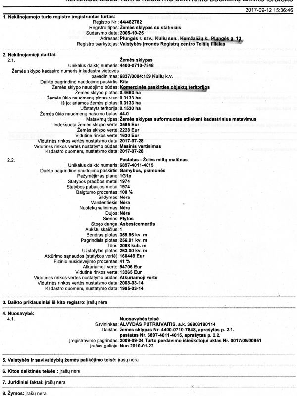 Kumžaičiai-Kumžaičiuose-Kumžaičiu Parduodamas Pastatas-Žolės miltu malūnas su 0.47 ha.Komercinės paskirties žemės sklypu adresu Kumžaičiu k.Plungės g.nr.13.Gretimais dar nuomojamas 33aru sklypas is valstybes.Sklypas ribojasi su dviejeis asfaltuotais keliais i Kulius ir į Plungę.Atstumas nuo Plungės iki sklypo 15km. nuo Klaipedos 35 km.prie pagrindinio kelio Vėžaičiai-Plungė ties Kuleis,labai strateginė vieta verslui nes labai pravažiuojanti ir judri vieta tinkanti verslo vystimui kaip benzino kolonėlei,sandeliams,pakelės moteliui ir t.t.Pagal dokumentus užstatyta teritorija 15a.bendras pastato plotas 359.96 kv.m.realei šiai dienai išlike tik pamatai.Puiki vieta investicijai. NUOSTABI VIETA VERTINANTIEMS GAMTA ! DAUGIAU ALTERNATYVIŲ PASIŪLYMŲ RASITE ADRESU Reikalinga profesionali pagalba PERKANT ar PARDUODANT nekilnojamąjį turtą - KREIPKITĖS !!! NEMOKAMAI KONSULTACIJAI,SKAMBINKITE 865090890