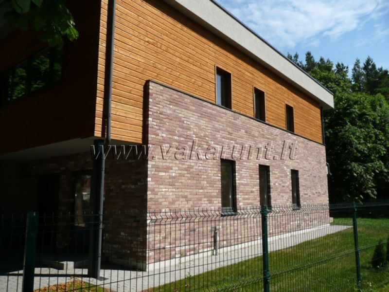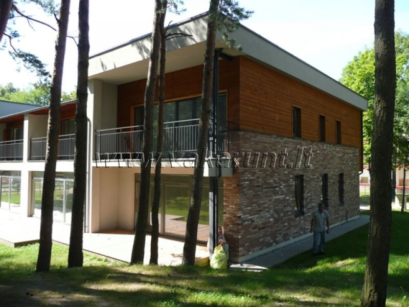 Šventojoje, parduodamas 129,6 kv.m. bendro ploto, dalinai įrengtas kotedžas su 19 kv.m. ploto garažu. Privestos miesto komunikacijos, dujos, sutvarkytas gerbūvis. Pirmame aukšte numatoma katilinė, wc, svetainė su išėjimu į terasą(pietų pusėje). Antrame aukšte - du miegamieji kambariai, vonios kambarys, atskiras miegamojo kambarys su vonios kambariu ir balkonu. Namas statytas iš keramikinių blokelių, šiltintas 10 cm. storio akmens vata. Rami vieta, ne prie gatvės, atstumas iki jūros apie 800 m. Sklype auga senos pušys, orentuotas į rytų ir pietų puses. Žemės sklypo plotas - 5,44 a. Kaina 520 000 Lt